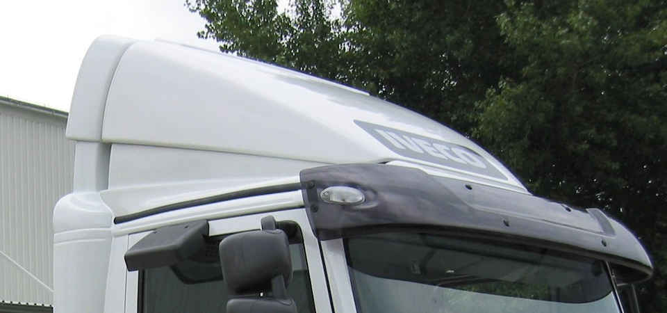 Výškovo nastaviteľný strešný spojler od 600 do 900 mm s bočnými spojlermi, pre vozidlá IVECO EUROCARGO s krátkou kabínou aj dlhou NÍZKOU kabínou.